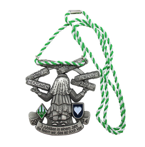 | 配件 | 獎牌一般配彩帶+彩帶圈 彩帶尺寸常用的寬度為22/25.4/28/30/35/38MM,長度一般為30英寸,具體可依使用者(如成人或兒童)來定。 彩帶的材質(zhì)常用的有熱轉(zhuǎn)印帶、印刷單色織帶或者多色織成的純彩帶 彩帶的車法分V和H車,也叫折車和平車